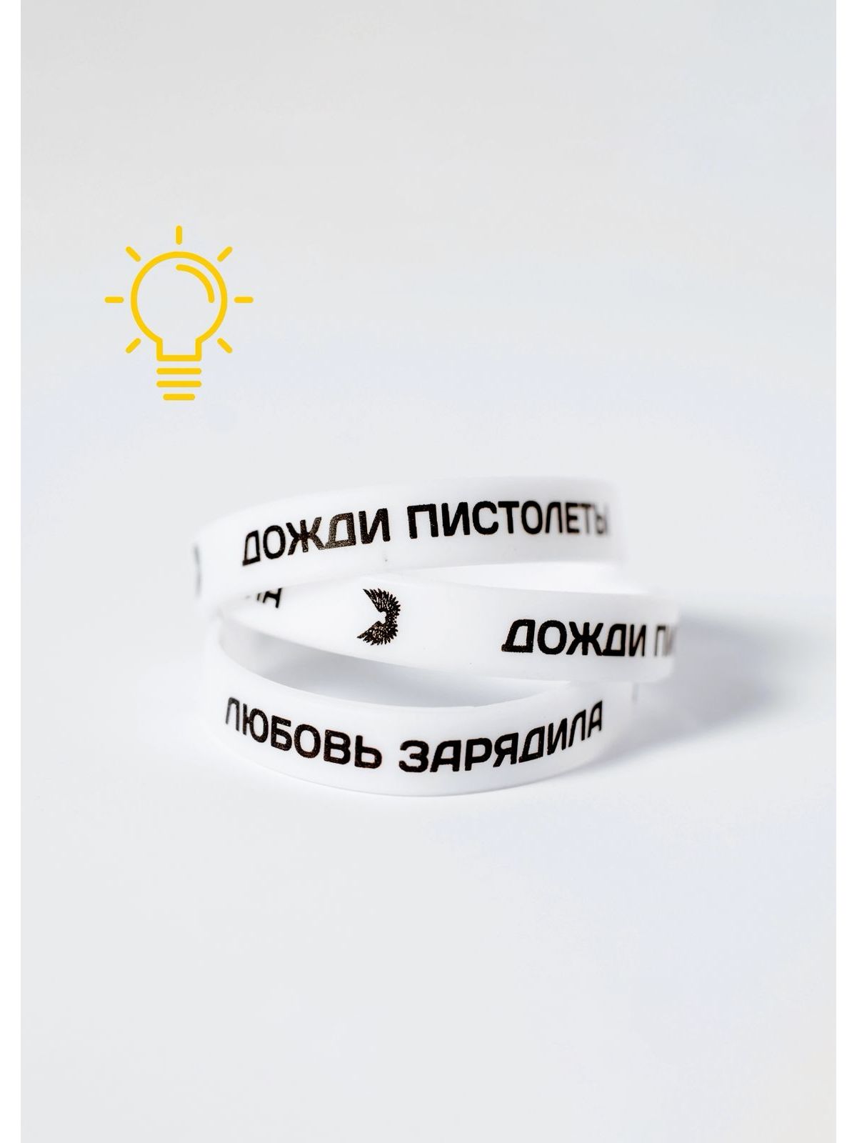 Браслет светонакопительный «Любовь зарядила, дожди пистолеты» WHITE